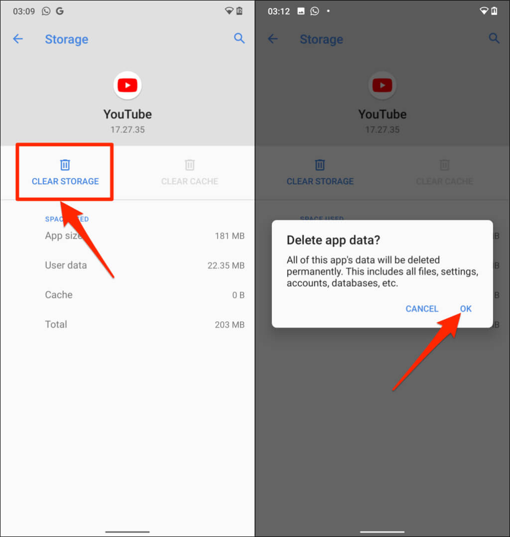 7. Καθαρίστε τα δεδομένα cache της εφαρμογής YouTube App