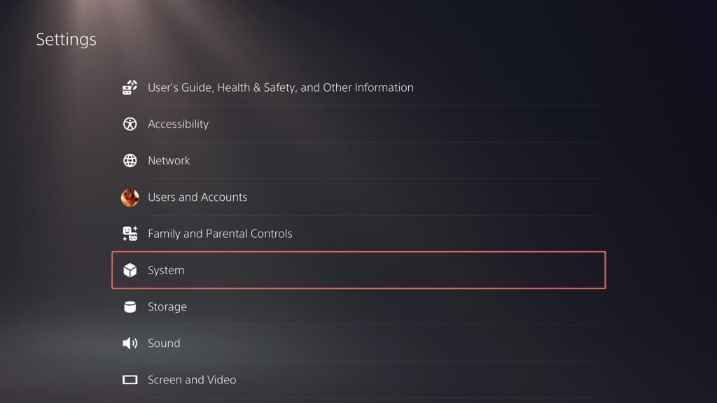 - Επισκεφθείτε το μενού Ρυθμίσεις του PS5 και επιλέξτεΣύστημα.