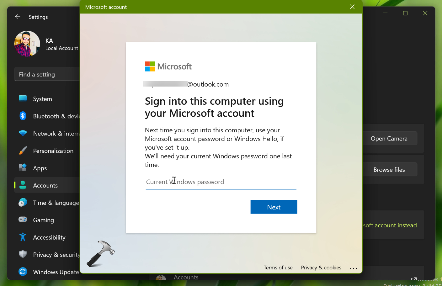 Μετατρέψτε τον τοπικό λογαριασμό σε λογαριασμό Microsoft αλλά με διαφορετικό αναγνωριστικό email