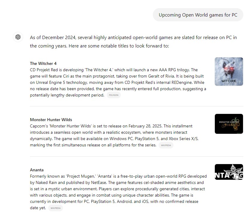 Το CHATGPT εμφανίζει επίσης εικόνες μέσα στη σύνοψη, αυτές προέρχονται από τους ιστότοπους από τους οποίους έλαβε τα δεδομένα από.
