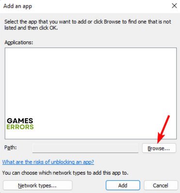 - Στη συνέχεια, μεταβείτε στο φάκελο εγκατάστασης του παιχνιδιού και πατήστε Προσθήκη για να το συμπεριλάβετε στη λίστα.