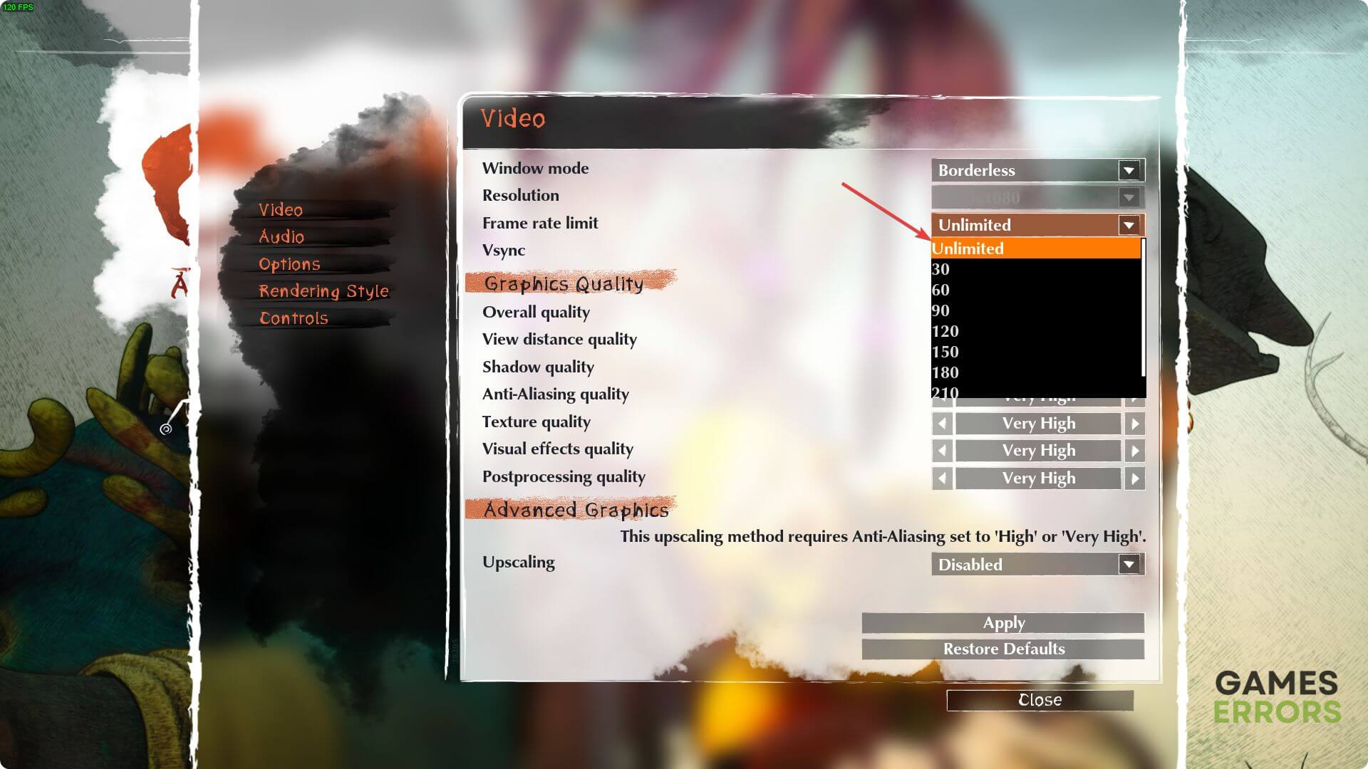 - Θέτω τοΌριο ρυθμού καρέσταςναΑπεριόριστοςή οτιδήποτε υψηλότερο ή τουλάχιστον κατάλληλο για το ρυθμό ανανέωσης της οθόνης σας.