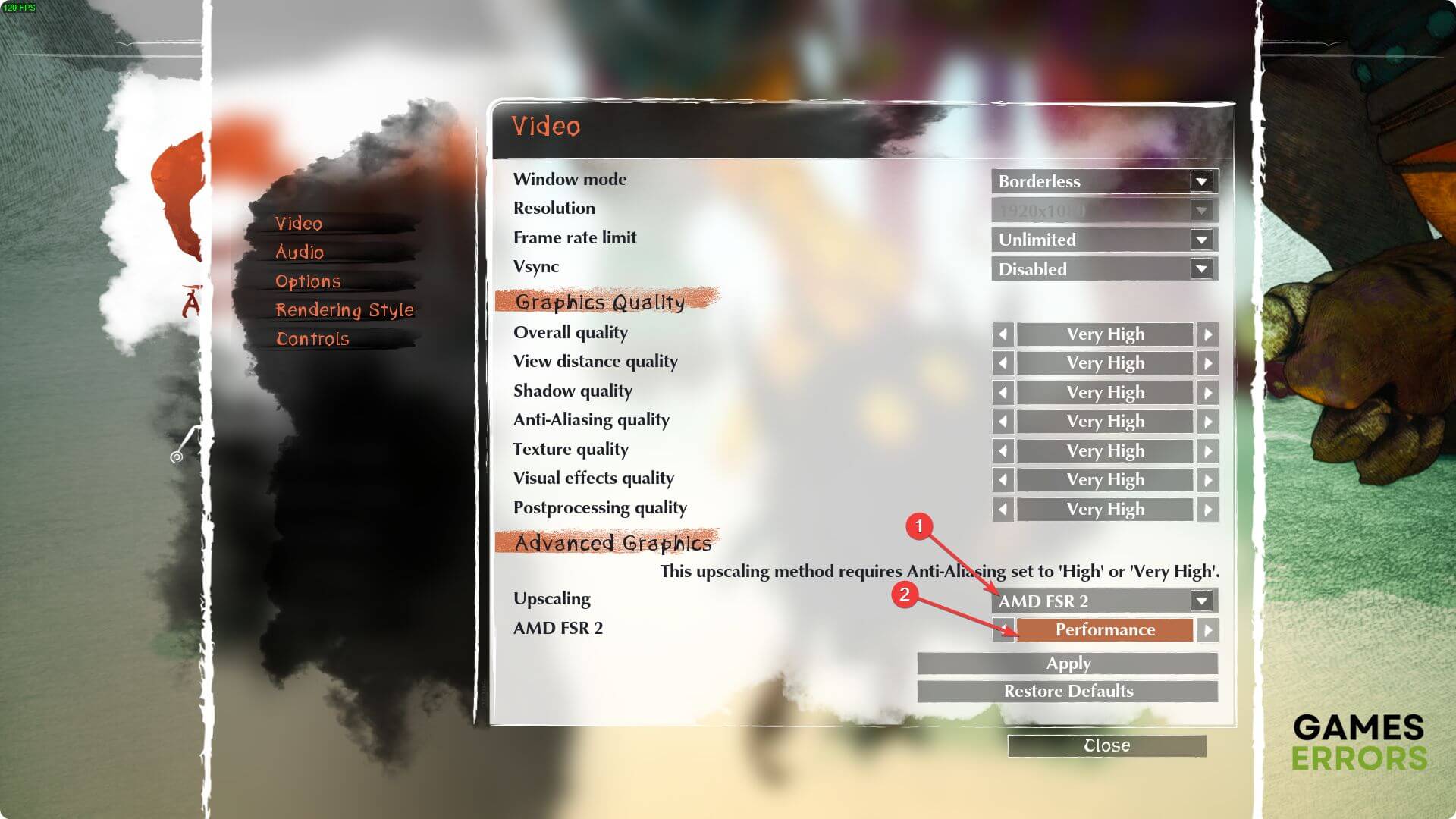 - Θέτω τοΑναβάθμισηναAMD FSR 2και τη λειτουργία προςεκτέλεσηΕάν χρησιμοποιείτε GPU AMD.