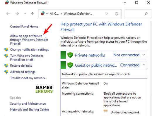 2. Κλικ στοΕπιτρέψτε μια εφαρμογή ή μια λειτουργία μέσω τείχους προστασίας των WindowsΣτο αριστερό πλαίσιο.