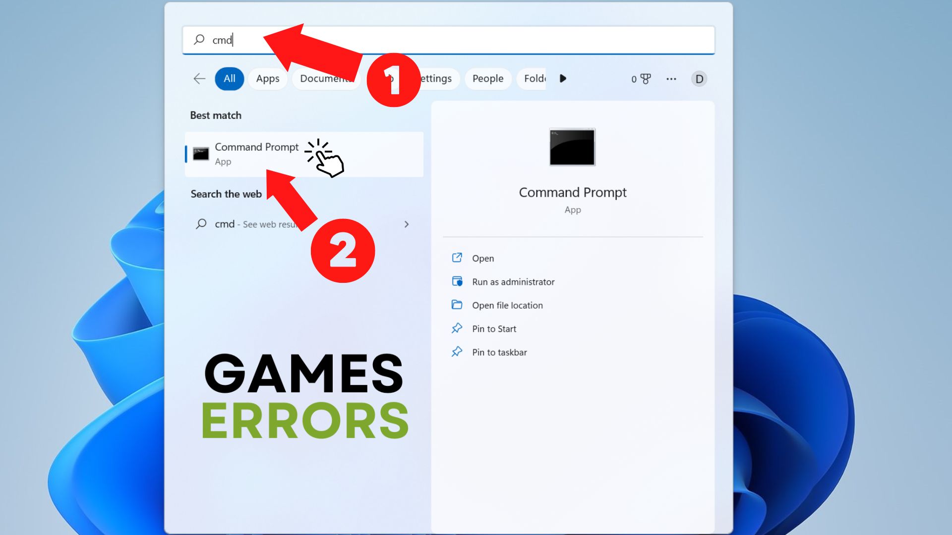 - Ανοίξτε το 'CMD' από τοΓραμμή αναζήτησης μενού εκκίνησηςκάνοντας κλικ σε αυτό.