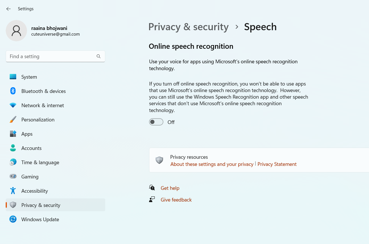 3. Τώρα μπορείτε να ενεργοποιήσετε/απενεργοποιήσετε την επιλογή αναγνώρισης ομιλίας των Windows.