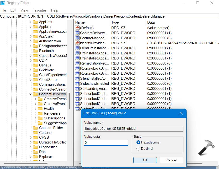 HKEY_CURRENT_USERSOFTWAREMicrosoftWindowsCurrentVersionContentDeliveryManager