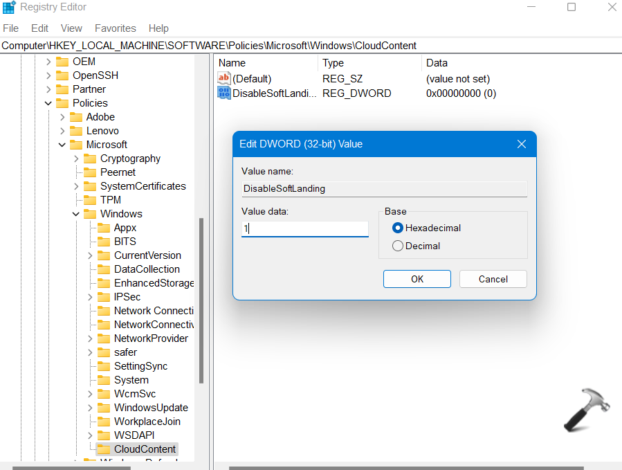 HKEY_LOCAL_MACHINESOFTWAREPoliciesMicrosoftWindowsCloudContent