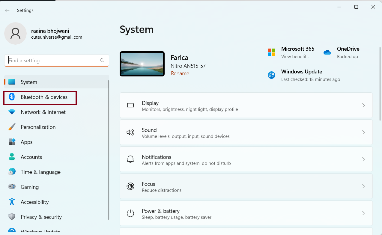 2. Κάντε κλικ στοBluetooth & συσκευέςεπιλογή στην αριστερή ενότητα.