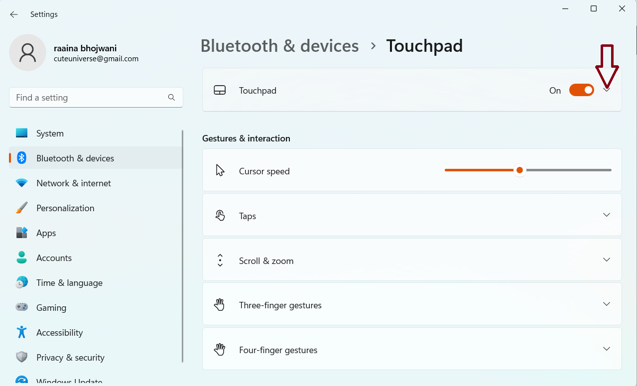 Αυτό θα απενεργοποιήσει όλες τις χειρονομίες touchpad στα Windows 11.