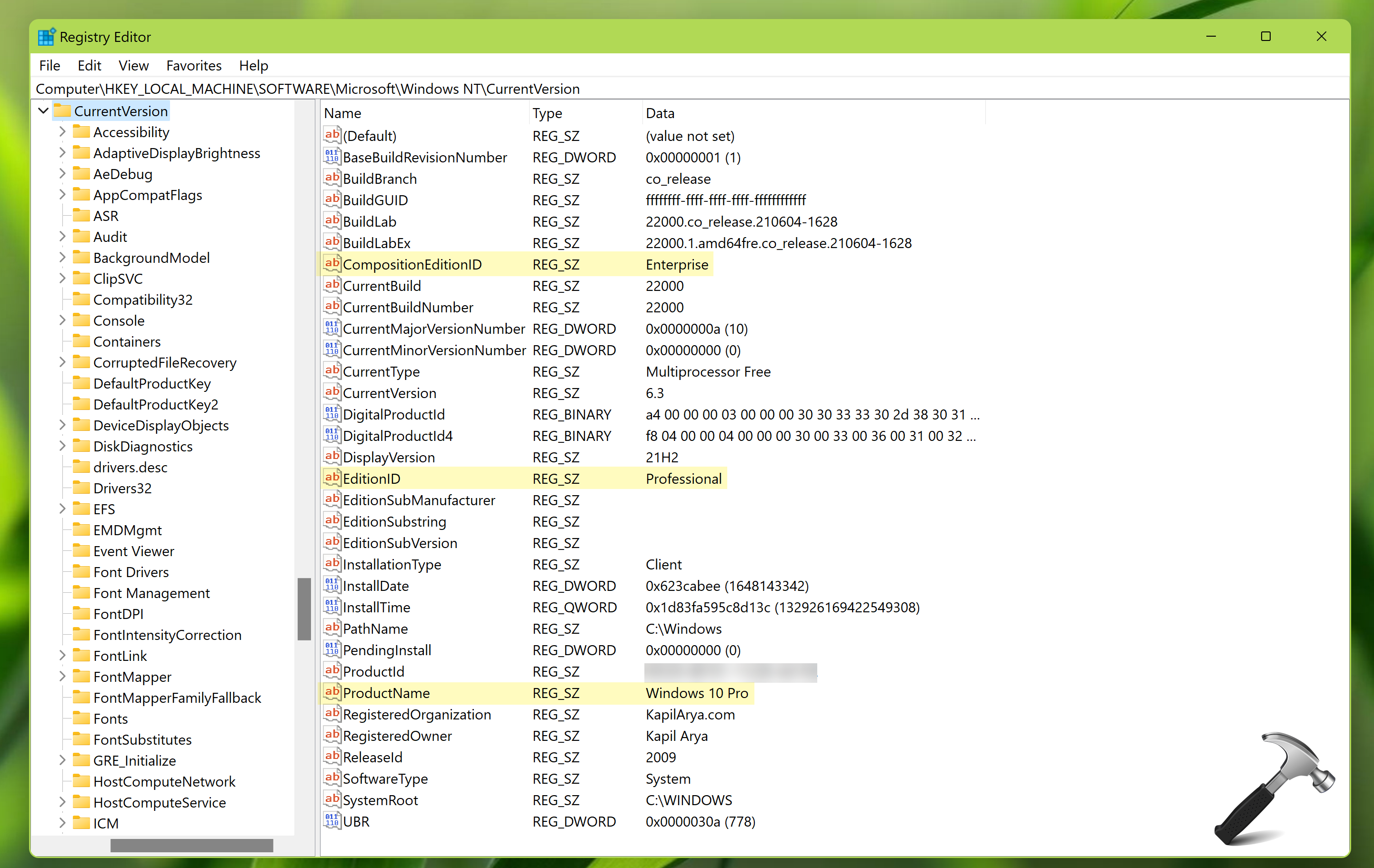 HKEY_LOCAL_MACHINESOFTWAREWow6432NodeMicrosoftWindows NTCurrentVersion