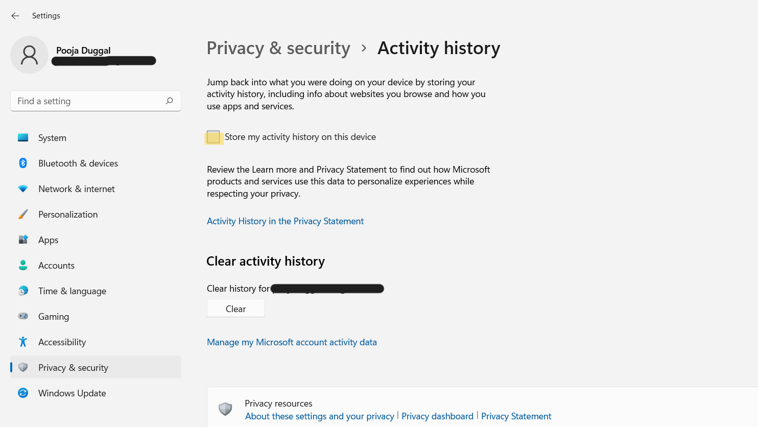 Ενεργοποιήστε ή απενεργοποιήστε το ιστορικό δραστηριότητας στα Windows 11