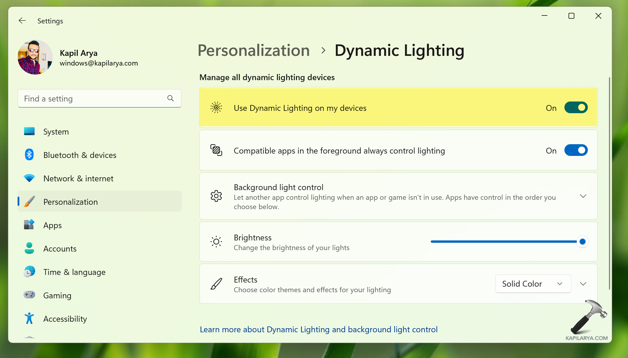 Ενεργοποιήστε τον δυναμικό φωτισμό στα Windows 11
