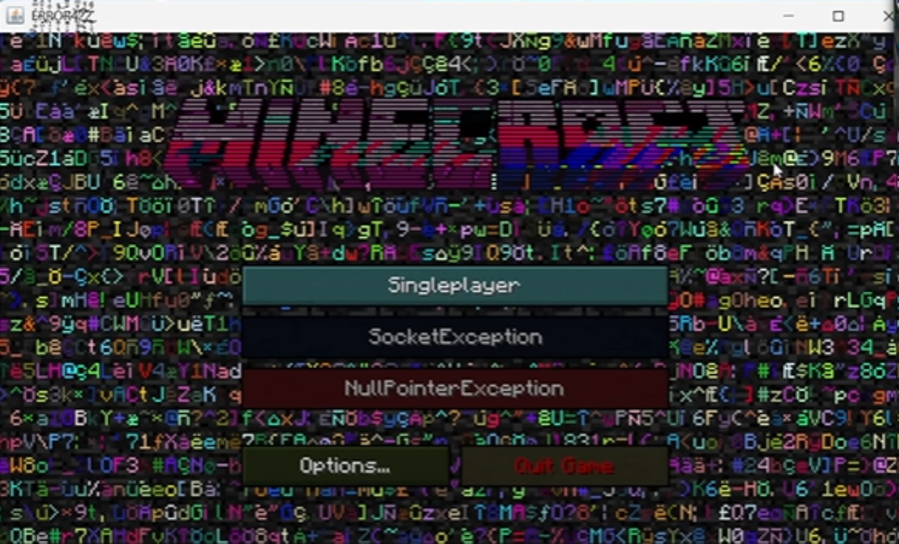 Το λογότυπο Minecraft δεν μπορεί να δει κανείς, αφού τα μέρη του κώδικα είναι διάσπαρτα σε όλη την οθόνη. Σε αυτήν την οθόνη, έχετε την επιλογή να παίξετε μόνοι σας χωρίς να περιορίζεστε με οποιονδήποτε τρόπο από το παιχνίδι.