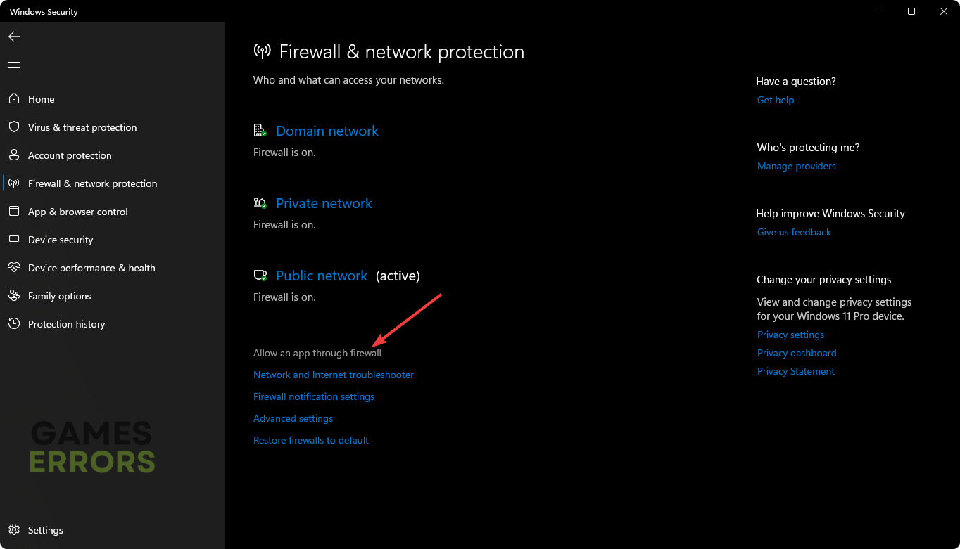 - Κλικ στοΠροστασία τείχους προστασίας και δικτύου.