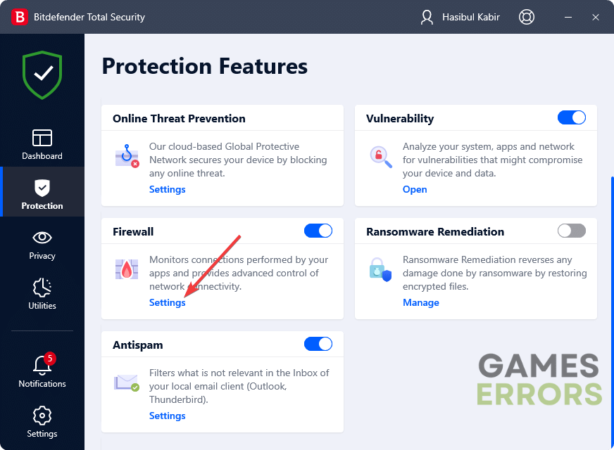 - Ανοίξτε το AV ή το τείχος προστασίας που χρησιμοποιείτε.