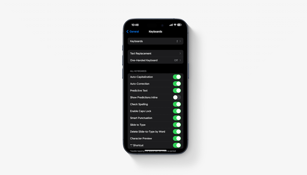 - Οι ρυθμίσεις πληκτρολογίου πρόσθεσαν μια νέα εναλλαγή "Show Predictive Online"Για να ενεργοποιήσετε/ απενεργοποιήσετε το κείμενο πρόβλεψης. Ρυθμίσεις Ρυθμίσεις> Γενικά> Πληκτρολόγιο> Εμφάνιση προγνωστικών online.