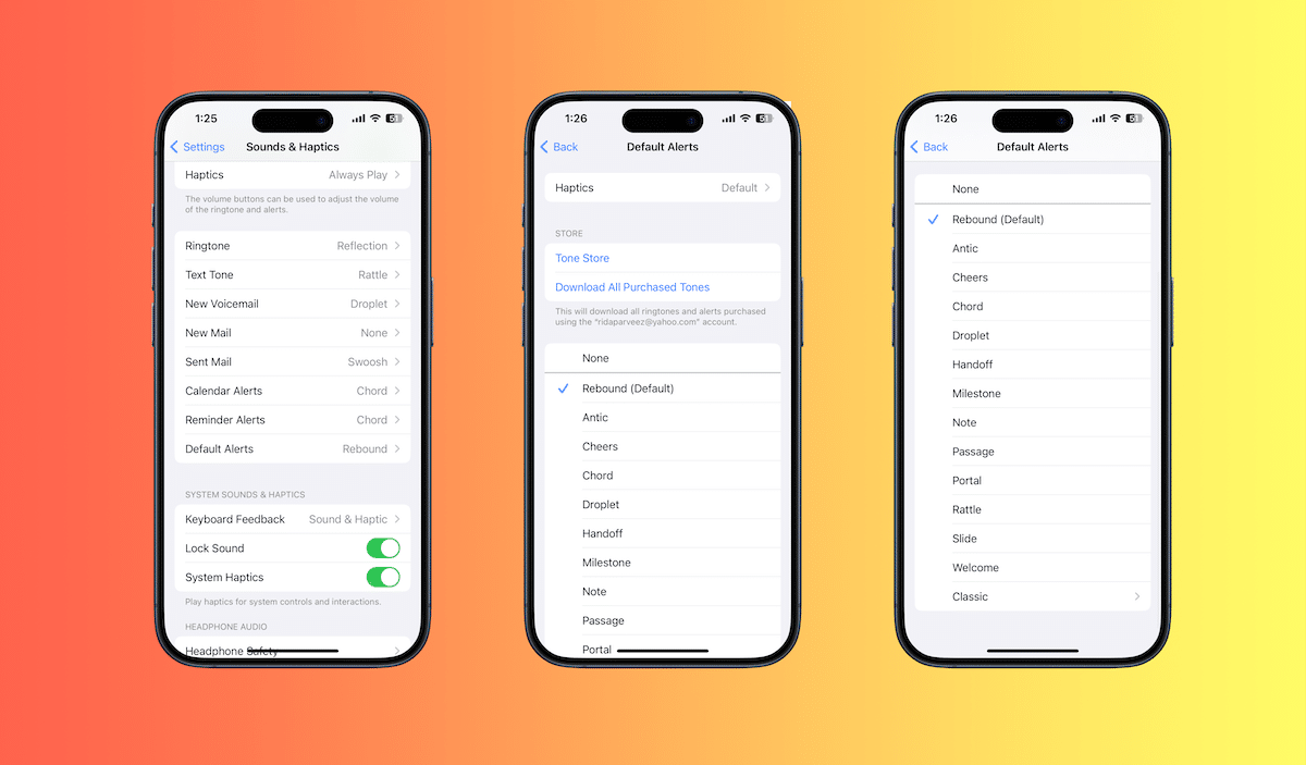 - Ειδοποίηση προεπιλεγμένων ήχων.Στην ενότητα Sounds & Haptics στην εφαρμογή Ρυθμίσεις, προστίθεται η νέα ενότητα "Προεπιλεγμένες ειδοποιήσεις", η οποία επιτρέπει στους χρήστες να επιλέξουν τον ήχο προειδοποίησης ειδοποιήσεων που προειδοποιούν, συμπεριλαμβανομένου του κλασικού, των τελωνείων και άλλων τόνων. Προηγουμένως, η ανάκαμψη ήταν ο μόνος ήχος προεπιλεγμένων ειδοποιήσεων που δεν μπορούσε να αλλάξει.