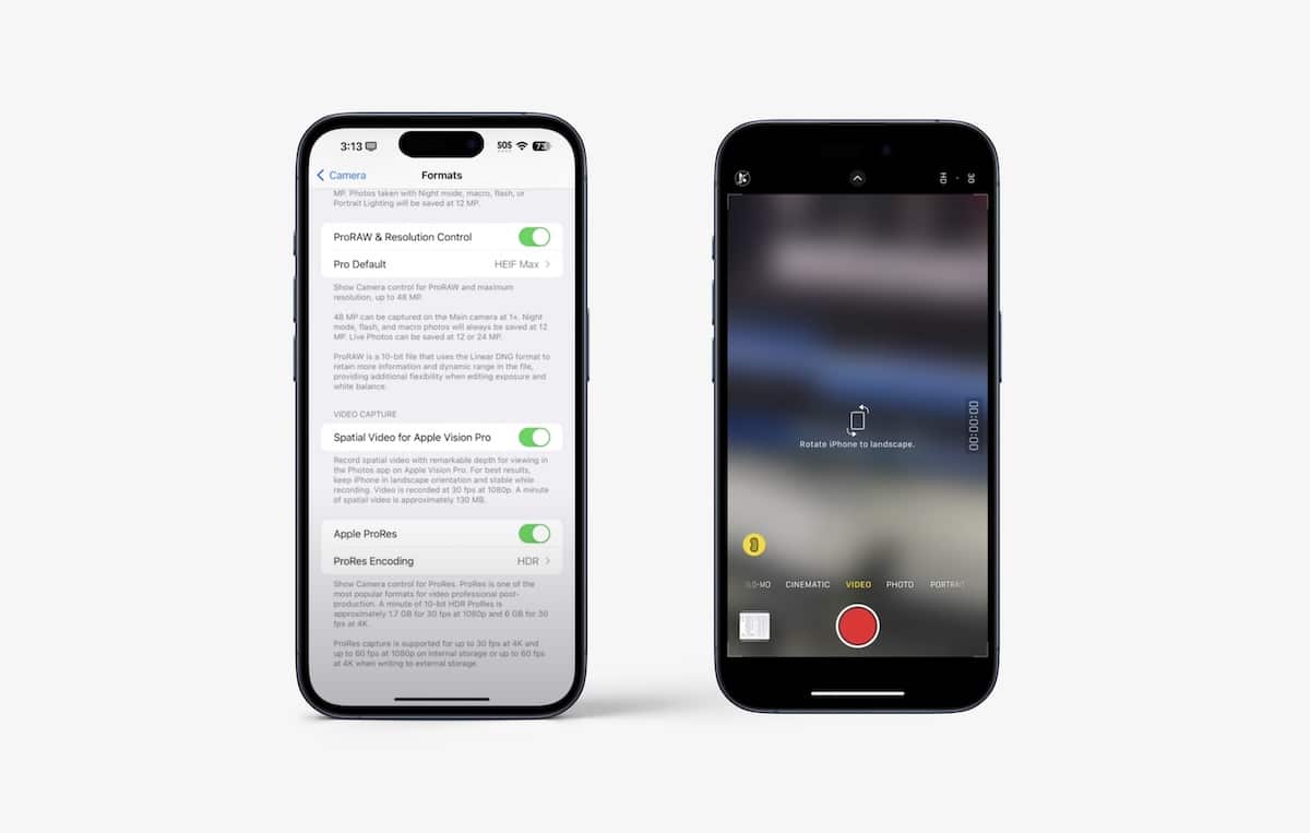 - Χωροταξικό βίντεο για τη λειτουργία Vision ProΔιατίθεται αποκλειστικά στο iPhone 15 Pro και το iPhone 15 Pro Max Models στις Ρυθμίσεις της κάμερας: Ρυθμίσεις App> Κάμερα> Μορφή> Χωρική βίντεο για το Vision Pro. Η νέα προαιρετική λειτουργία κάμερας επιτρέπει στους χρήστες να καταγράφουν χωρικά βίντεο που μπορούν να προβληθούν στο ακουστικό Apple Vision Pro που αναμένεται να κυκλοφορήσει στις αρχές του 2024. Η περιγραφή της λειτουργίας αναφέρει: