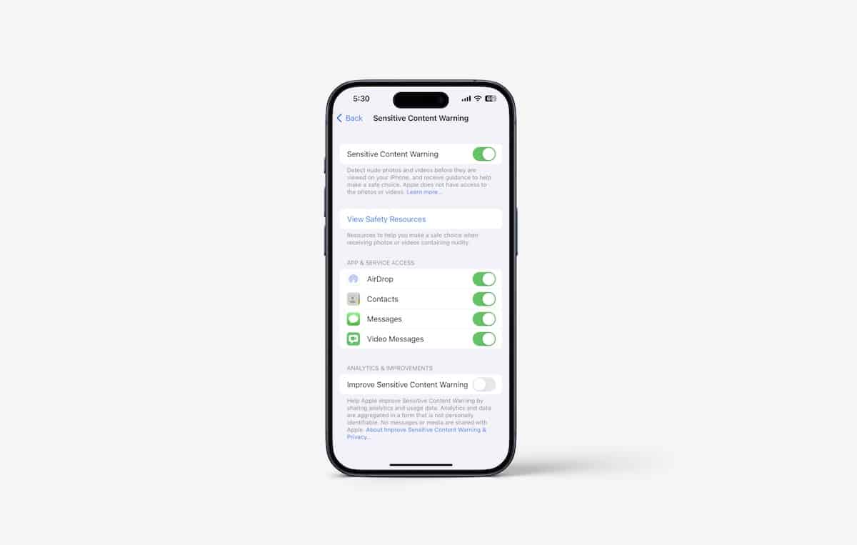 - Το τμήμα απορρήτου και ασφάλειας στην εφαρμογή Ρυθμίσεις επεκτείνει τις ευαίσθητες προειδοποιήσεις περιεχομένου στις επαφές. Όταν ενεργοποιηθεί, η λειτουργία θαBlur Explicit Images που μοιράζονται μέσω του NameDrop σε αφίσες επαφής και αυτοκόλλητα στο iMessage.