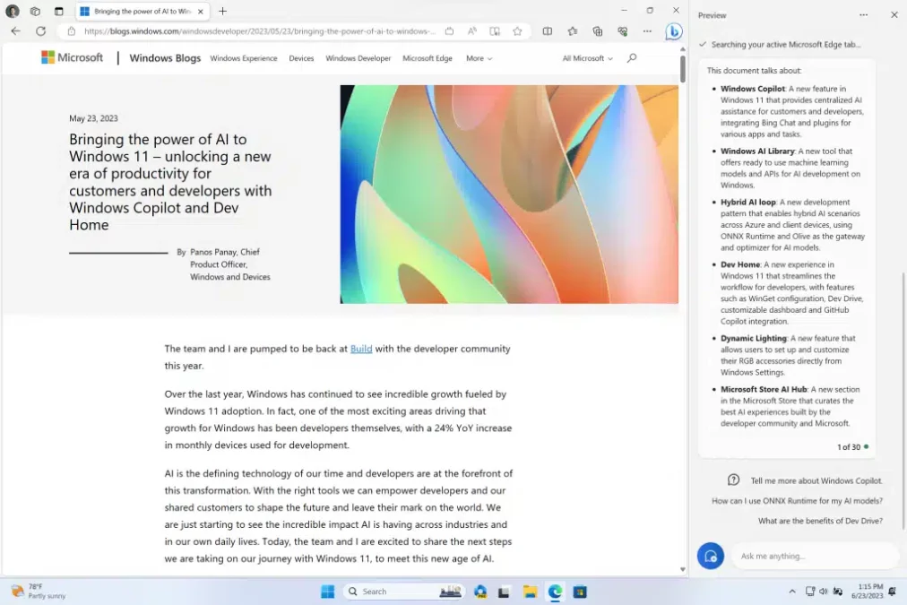 - Απαντήσεις ερωτήσεων: Τα Windows AI Copilot μπορούν να απαντήσουν σε ερωτήσεις που έχουν οι χρήστες σχετικά με το περιεχόμενο στο οποίο εργάζονται. Αυτό μπορεί να βοηθήσει τους χρήστες να μάθουν περισσότερα για το θέμα για το οποίο γράφουν.