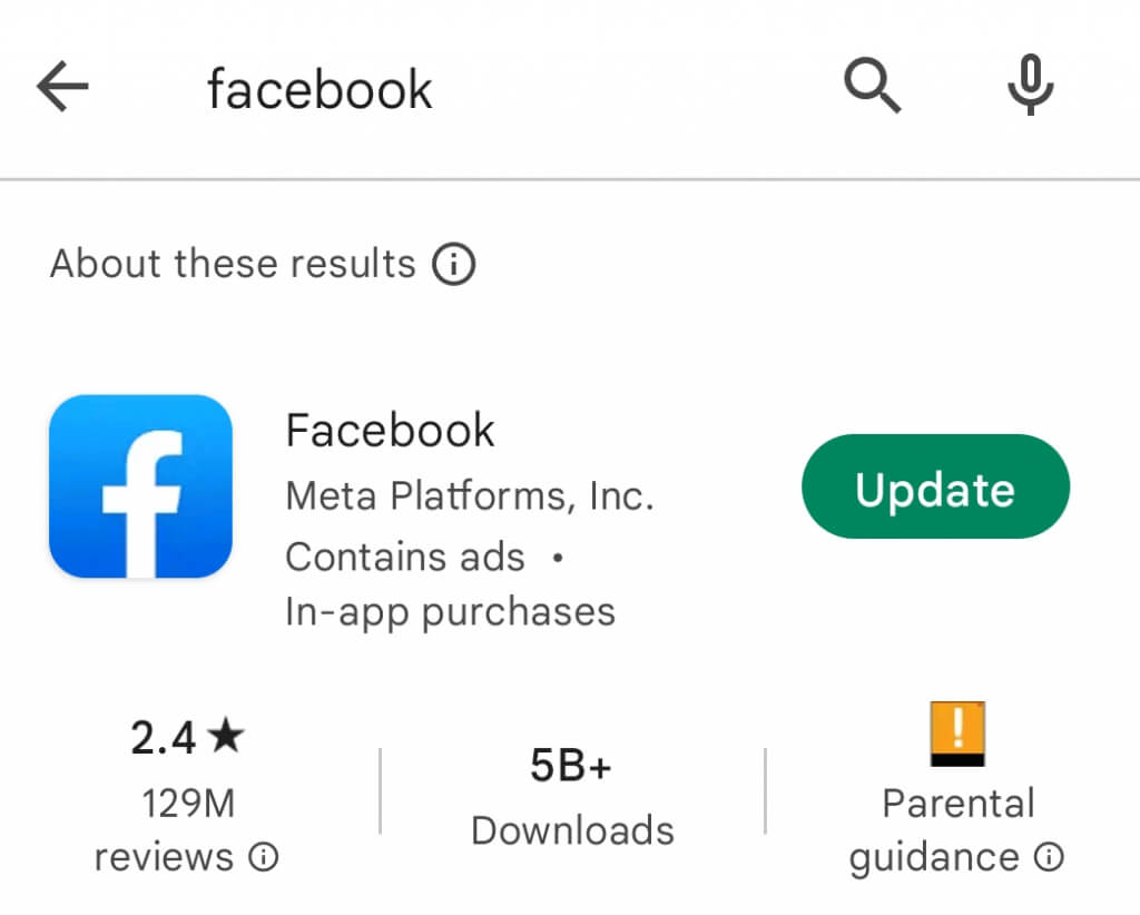 Αυτή η λύση ισχύει μόνο εάν χρησιμοποιείτε την εφαρμογή Facebook στην κινητή συσκευή σας. Ανοίξτε την εφαρμογή Facebook, μεταβείτε στις ρυθμίσεις και μετακινηθείτε προς τα κάτω μέχρι να δείτε την επιλογή About. Πατήστε σε αυτό και η έκδοση της εφαρμογής Facebook που είναι εγκατεστημένη στη συσκευή σας θα εμφανιστεί. Μπορείτε επίσης να ελέγξετε το Play Store της Google ή το App Store της Apple για ενημερώσεις.