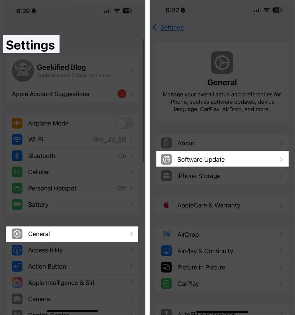 Η εκτέλεση μιας ξεπερασμένης έκδοσης iOS μπορεί να οδηγήσει σε σφάλματα όπως "Περιμένοντας για ενεργοποίηση" στο iPhone σας. Έτσι, θα πρέπει να κρατάτε το iPhone σας ενημερωμένο για να επιλύσετε προβλήματα συμβατότητας και να διορθώσετε σφάλματα που σχετίζονται με την ενεργοποίηση. ΠηγαίνωΡυθμίσεις→Γενικός→Ενημέρωση λογισμικούκαι πατήστεΕγκαταστήστε τώραΕάν είναι διαθέσιμη κάποια νέα έκδοση. Μόλις επανεκκινήσει το iPhone σας, δοκιμάστε να ενεργοποιήσετε το Facetime.