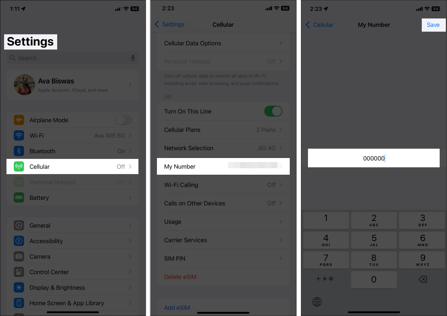 ΠηγαίνωΡυθμίσεις, επιλέξτεΚυτταρικός, και αναζητήστεΟ αριθμός μου. Εάν ο αριθμός τηλεφώνου σας λείπει ή είναι λανθασμένος, πατήστεΟ αριθμός μου, εισαγάγετε τον σωστό αριθμό και πατήστεΕκτός. Στη συνέχεια, εναλλαγήΕνεργοποιήστε αυτήν τη γραμμή. Αυτό εξασφαλίζει ότι το iPhone σας μπορεί να έχει πρόσβαση στον αριθμό τηλεφώνου σας.