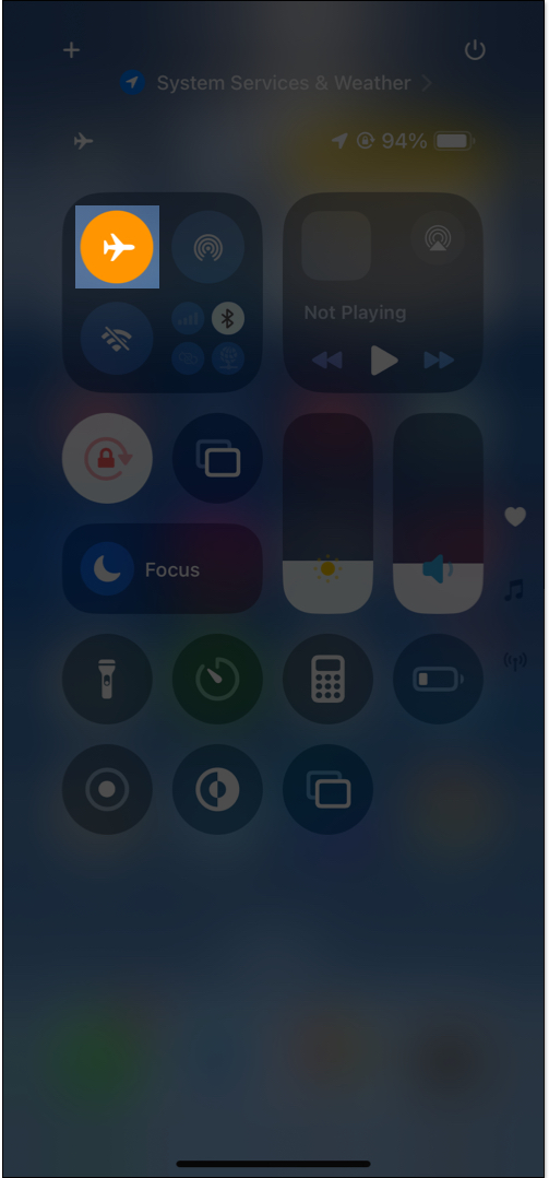Μια ισχυρή και σταθερή σύνδεση στο διαδίκτυο είναι απαραίτητη για την ενεργοποίηση του FaceTime. Για να ανανεώσετε το δίκτυο iPhone σας, μεταβείτε στοΚέντρο ελέγχουκαι πατήστε τοΛειτουργία αεροπλάνουκουμπί. Αυτό θα ενεργοποιήσει τη λειτουργία αεροπλάνου. Περιμένετε για μερικά δευτερόλεπτα και πατήστε ξανά για να το απενεργοποιήσετε. Βεβαιωθείτε ότι το Wi-Fi ή το Cellular Plan σας έχει ενεργό σύνδεση στο Διαδίκτυο.