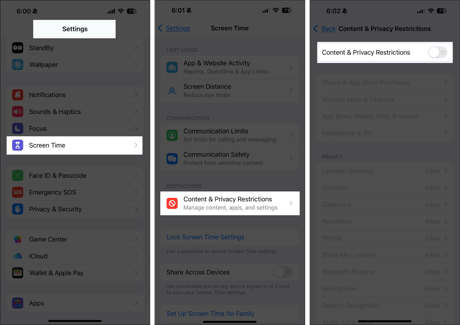Εάν τοΟρίστε αυτόματαΤο Aggle είναι γκρίζο, μπορεί να οφείλεται σε περιορισμό που ορίζεται από την ώρα της οθόνης ή τον μεταφορέα σας. Μπορείτε να απενεργοποιήσετε το χρόνο της οθόνης πηγαίνονταςΡυθμίσεις→Ώρα προβολής→Περιορισμοί περιεχομένου και απορρήτουκαι να το απενεργοποιήσετε και να δείτε αν εμφανίζεται η επιλογή.