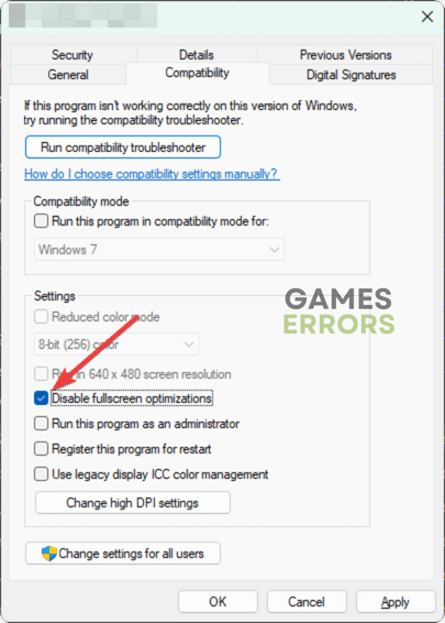 - Απενεργοποιήστε τη βελτιστοποίηση πλήρους οθόνης