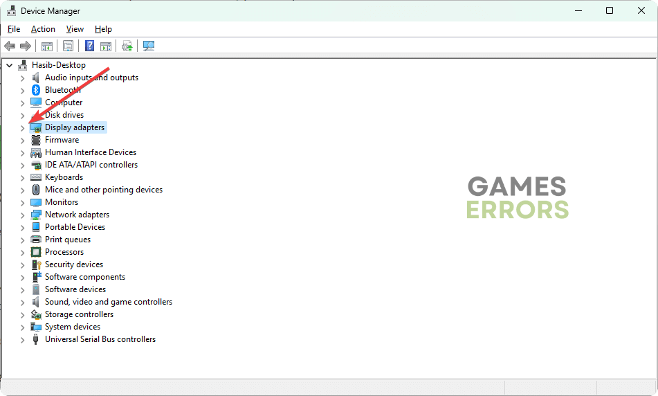 - Κάντε κλικ στο πλήκτρο βέλους δίπλα στους προσαρμογείς οθόνης για να το επεκτείνετε.