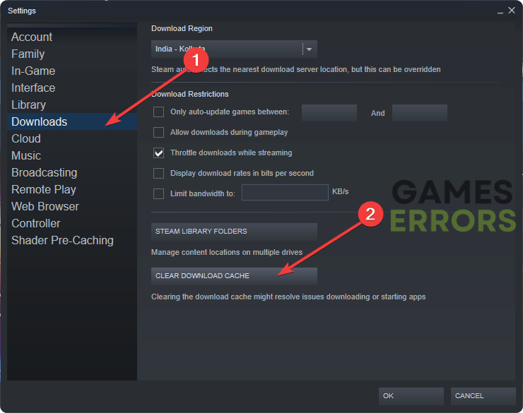 - Πλοηγηθείτε στοΛήψειςκαρτέλα και κάντε κλικ στοΚαθαρή προσωρινή μνήμη λήψης.