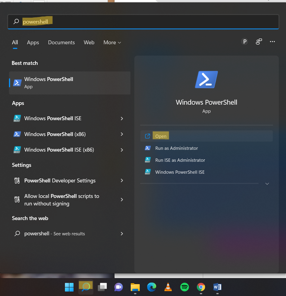 1.ΑνοιχτόWindows PowerShellαπόΑναζήτηση παραθύρωνπληκτρολόγησηpowerShell.
