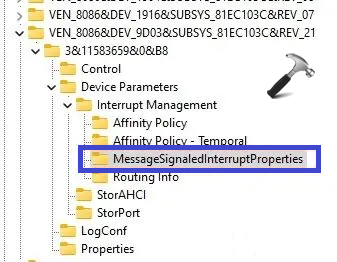 Εάν ο υπολογιστής σας χρησιμοποιεί το "Storahci.sys"Οδηγός, πιθανότατα επηρεάζεται από αυτό το ζήτημα. Η Microsoft δηλώνει περαιτέρω ότι εάν η λειτουργία διακόπτη (MSI) είναι απενεργοποιημένη, η χρήση του δίσκου μπορεί να μειωθεί δραστικά. Ακολουθήστε τα παρακάτω βήματα: