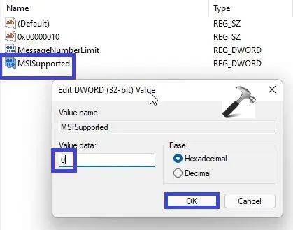 7. Στο δεξιό πλαίσιο, κάντε διπλό κλικ στο "Msisupported".
