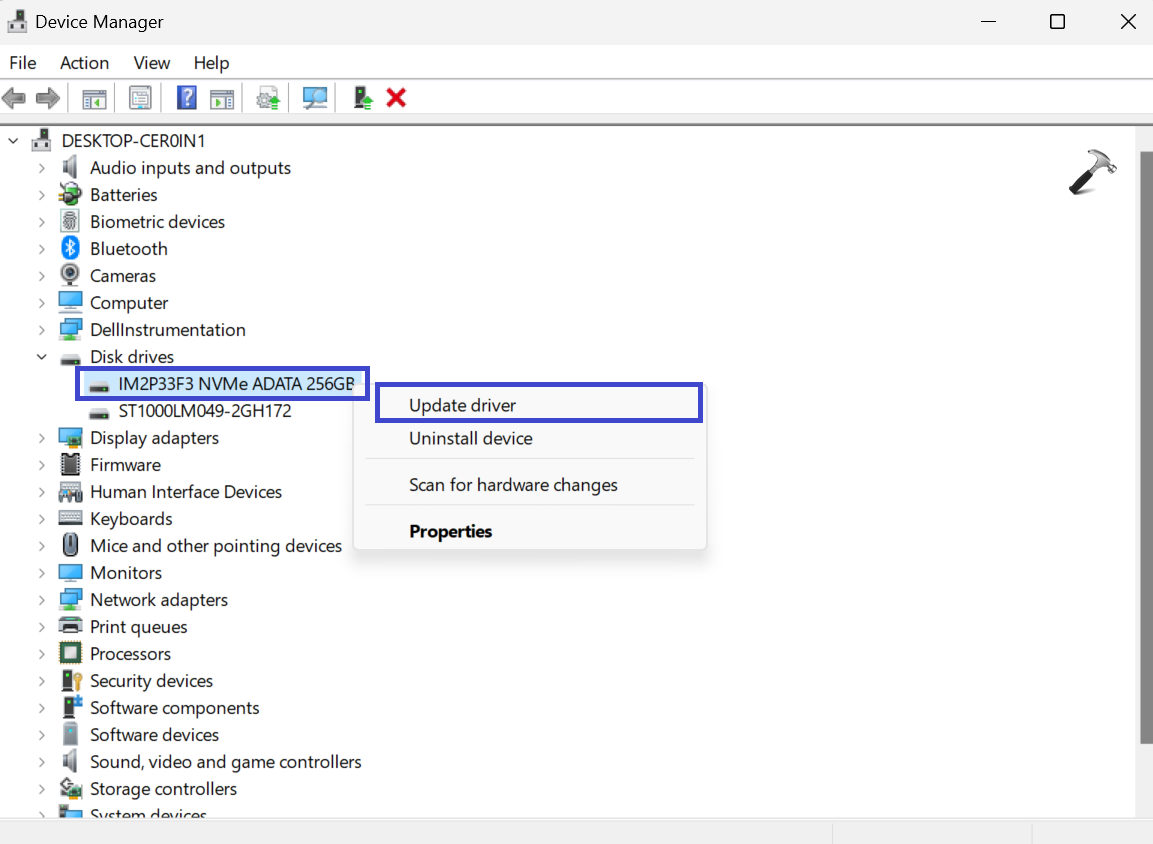 Λόγω των ελαττωματικών οδηγών αποθήκευσης, ο δίσκος μπορεί να κολλήσει σε μια μνήμη και μπορεί να εκτελέσει επανειλημμένα μια ενέργεια. Δοκιμάστε να ενημερώσετε τα προγράμματα οδήγησης αποθήκευσης στην τελευταία έκδοση: