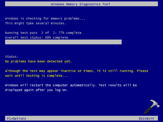 Το ζήτημα θα μπορούσε να προκύψει εξαιτίας ενός αποτυχημένου RAM. Μπορείτε να χρησιμοποιήσετε δωρεάν προγράμματα όπως MemTest86 ή Windows Memory Diagnostic για να δοκιμάσετε τη μνήμη δωρεάν.