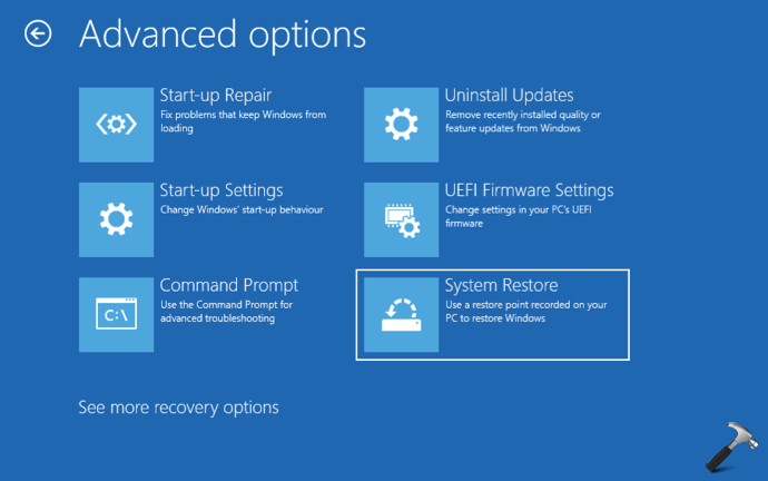 Επιλογή 5: Δοκιμάστε την επαναφορά του συστήματος από τις προχωρημένες επιλογές εκκίνησης