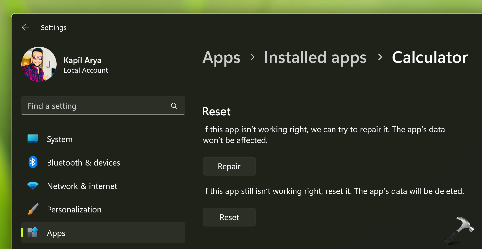 Διορθώστε 1: Επανατοποθετήστε την εφαρμογή αριθμομηχανής