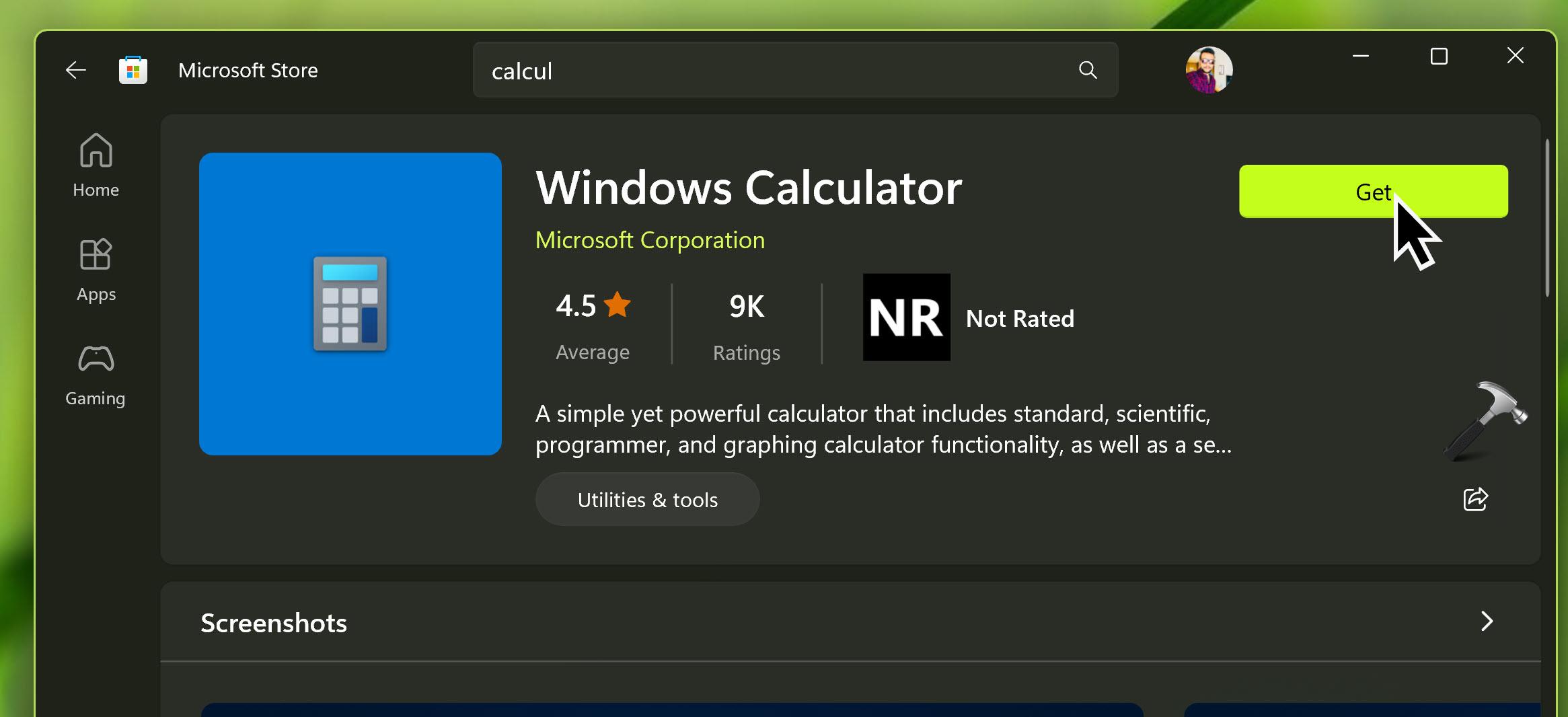 - Αναζητήστε "αριθμομηχανή" στη γραμμή αναζήτησης του καταστήματος.