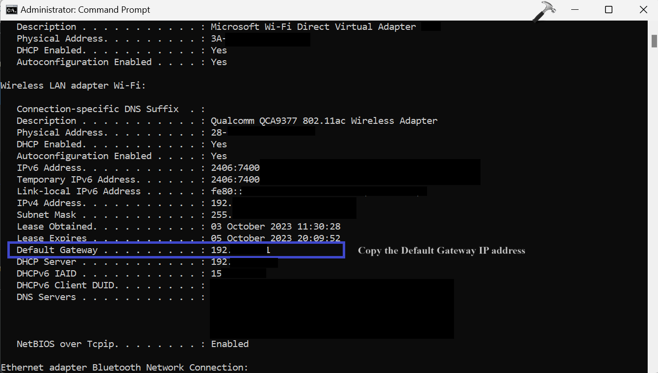 3. Τώρα. Αντιγράψτε τη διεύθυνση IP Gateway Router. Επικολλήστε τη διεύθυνση IP στη γραμμή εντολών και πατήστε Enter. Αυτό θα ανοίξει τη σελίδα σύνδεσης του δρομολογητή.