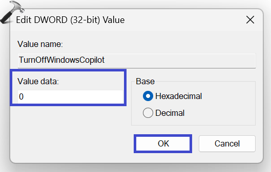Τύπος "Tweroffwindowscopilot"Και πατήστε Enter.