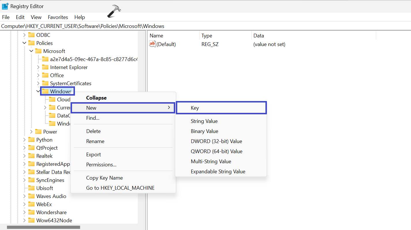 HKEY_CURRENT_USERSoftwarePoliciesMicrosoftWindows