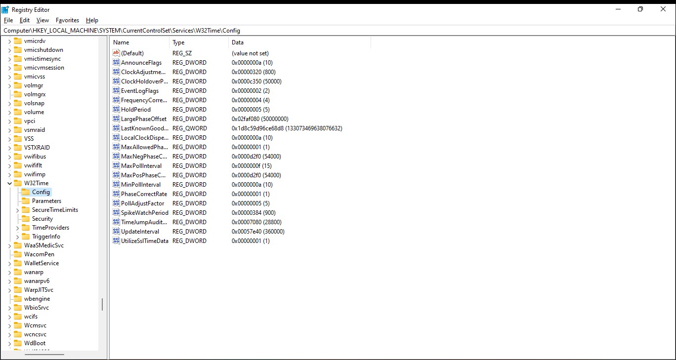ComputerHKEY_LOCAL_MACHINESYSTEMCurrentControlSetServicesW32TimeConfig