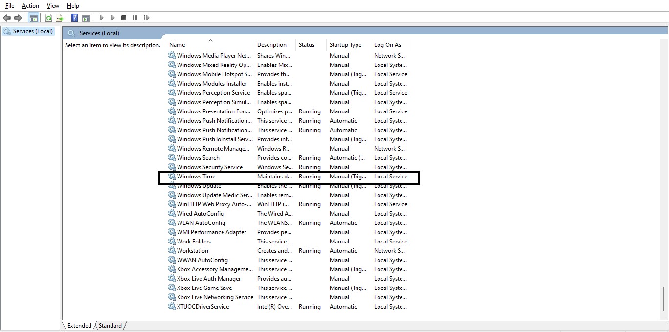 3. ΕπιλέξτεΥπηρεσία ώρας των Windowsστη δεξιά πλευρά.