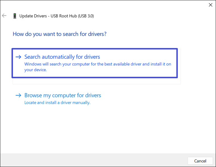 3. Στη συνέχεια, επιλέξτε "Αναζήτηση αυτόματα για τους οδηγούς"Και ακολουθήστε τις οδηγίες στην οθόνη για να ενημερώσετε το πρόγραμμα οδήγησης.