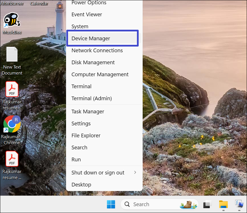 1. Κάντε δεξί κλικ στο μενού Έναρξης και επιλέξτε "Διαχειριστής συσκευών"Από το μενού.