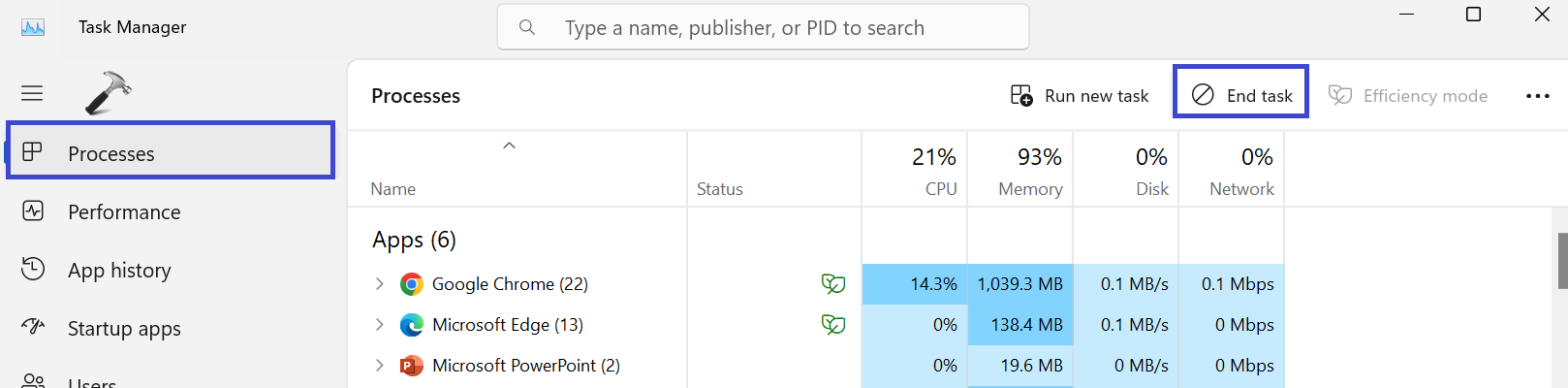 1. Ανοίξτε τον διαχειριστή εργασιών και μεταβείτε στοΔιαδικασίεςαυτί.