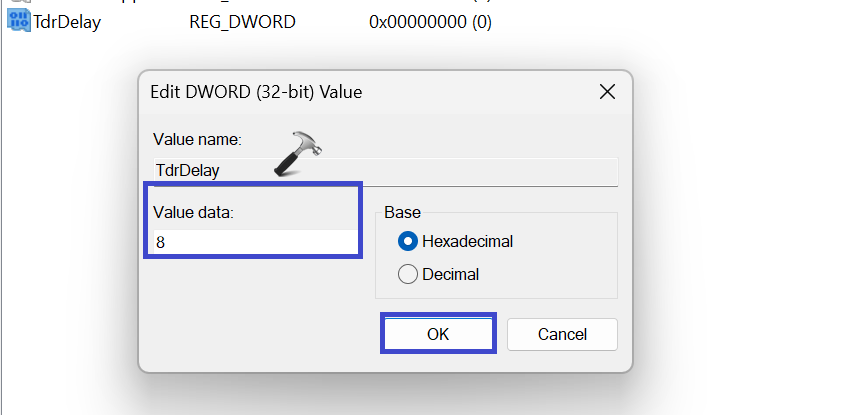 Τύπος "Tdrdelay"Και πατήστε Enter.